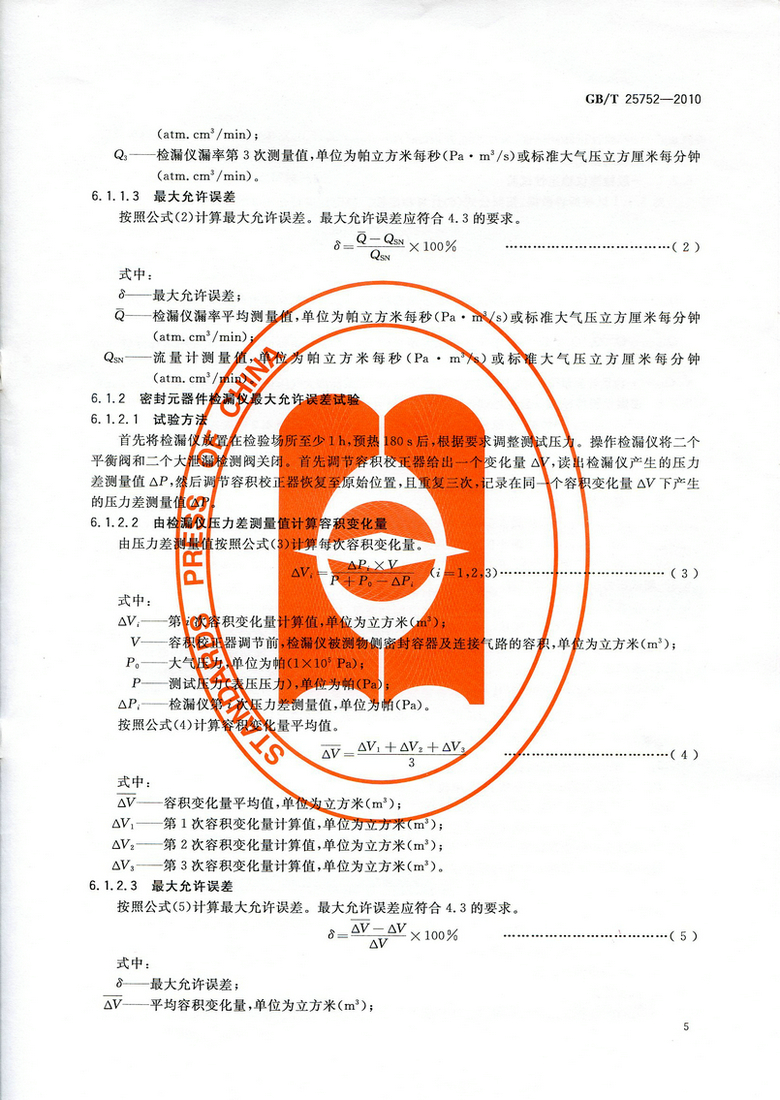 《差壓式氣密檢漏儀》GB/T 25752—2010