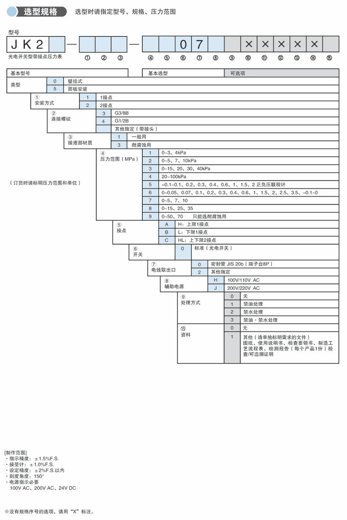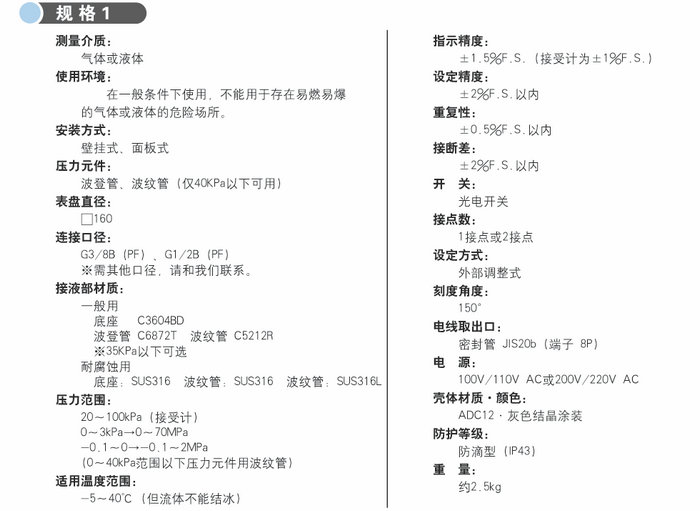 本產品在壓力表中內置光電開關,可用于控制大容量開關的報警裝置