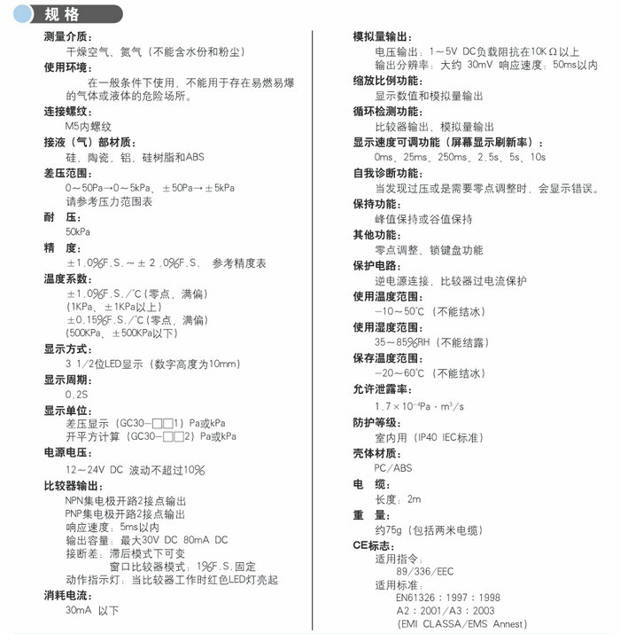 最小量程可達50Pa;
