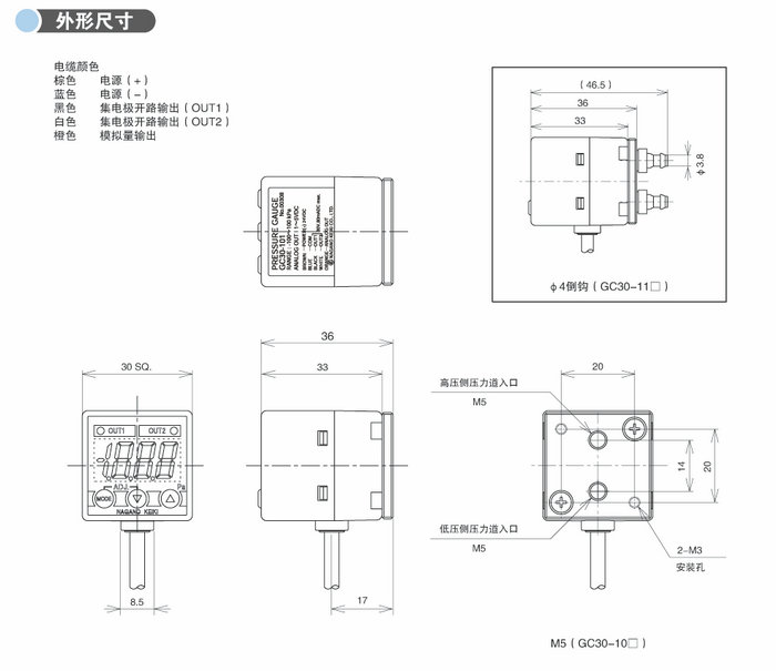 這是一款邊長為30mm的小型數顯差壓表,配備了數字顯示,輸出等功能,體積小節省安裝空間