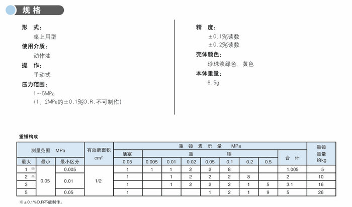 可用于高壓領域(10-50MPa)的壓力范圍檢查和校正