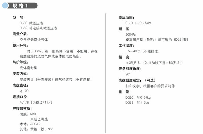 該壓力表通過測量壓力變化測出空調過濾器阻塞情況。它也適用于檢測和控制無菌或接近無菌的室內壓力。另外,將它的低壓側開放,可做微壓表使用。