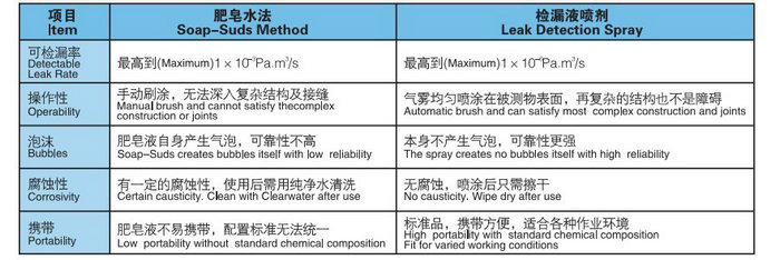 噴涂于被測對象表面,通過產生微小穩定的氣泡來檢測泄漏